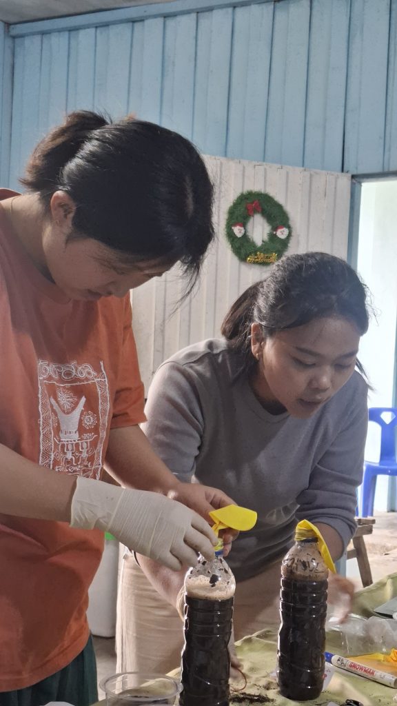 Sementara itu, uji sifat biologi tanah dilakukan untuk melihat aktivitas mikroorganisme yang hidup di dalam tanah. Pengujian ini menggunakan botol bekas dan balon, serta mikroorganisme yang berasal dari bahan yang dibuat secara mandiri seperti eco-enzyme, IMO (Indigenous Microorganisms), dan PGPR (Plant Growth Promoting Rhizobacteria).